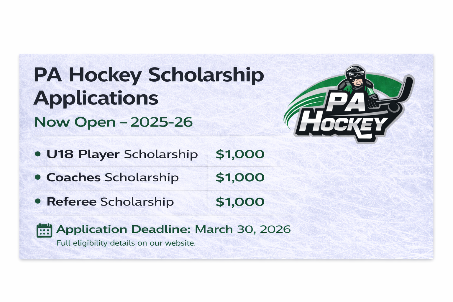 PA Hockey 2025-26 Scholarship Applications Now Open